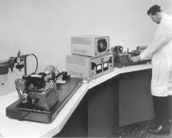 These variations are amplified and then sorted into two groups according to how often they occur. The low band looks at variations that occur from 4-17 times per revolution, and the high band looks at those that occur from 17 to 330 times per revolution. The RMS value of the waviness is read out directly in microinches in each of the two bands. The instrument incorporates an Oscilloscope that draws an electrical picture of the circumference of the ball. This allows the operator to analyze the actual nature of the waviness.